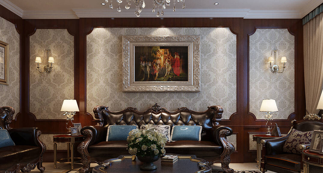 安納溪204㎡別墅客廳沙發(fā)美式風(fēng)格裝修案例效果圖
