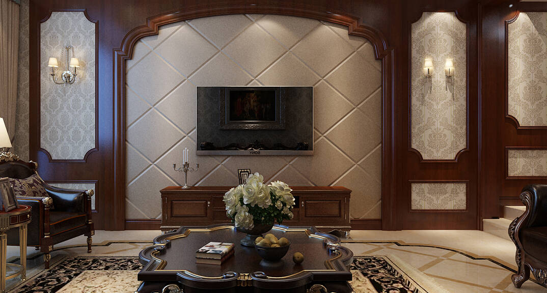 安納溪204㎡別墅客廳電視美式風(fēng)格裝修案例效果圖