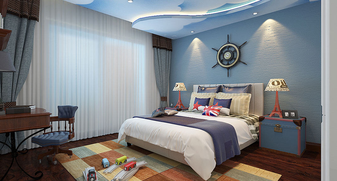 安納溪204㎡別墅男孩房美式風(fēng)格裝修案例效果圖