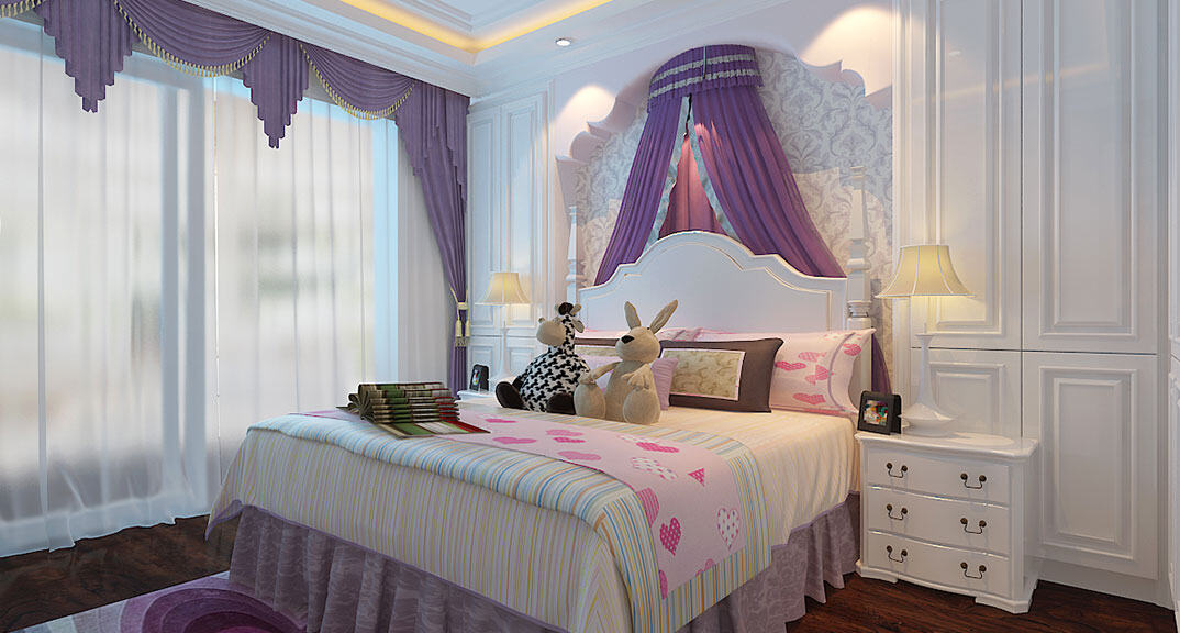 安納溪204㎡別墅女兒房美式風(fēng)格裝修案例效果圖