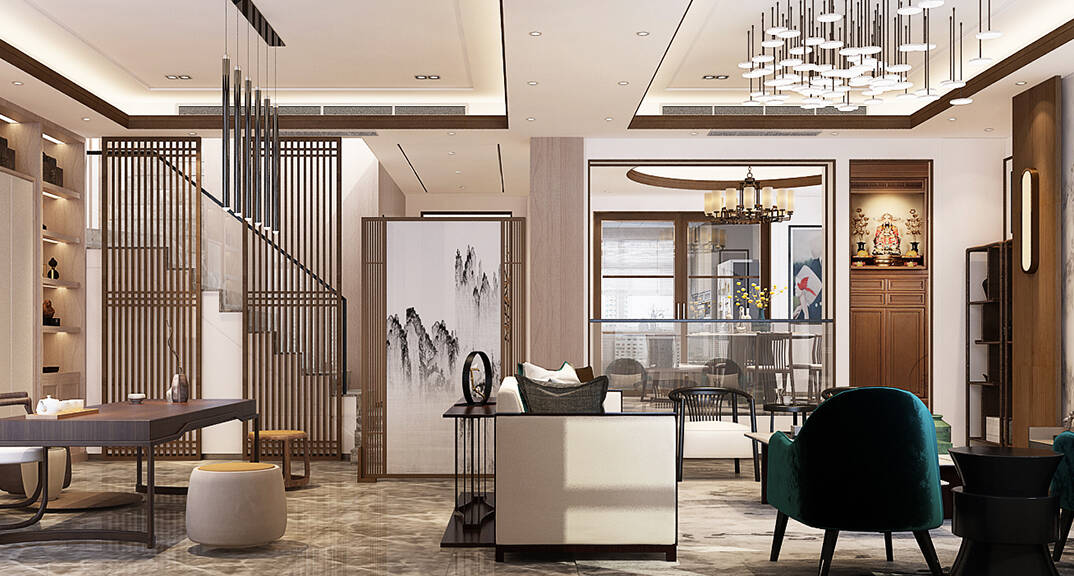 佳源都市600㎡別墅客廳新中式風(fēng)格裝修效果圖