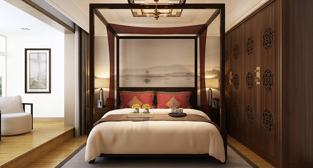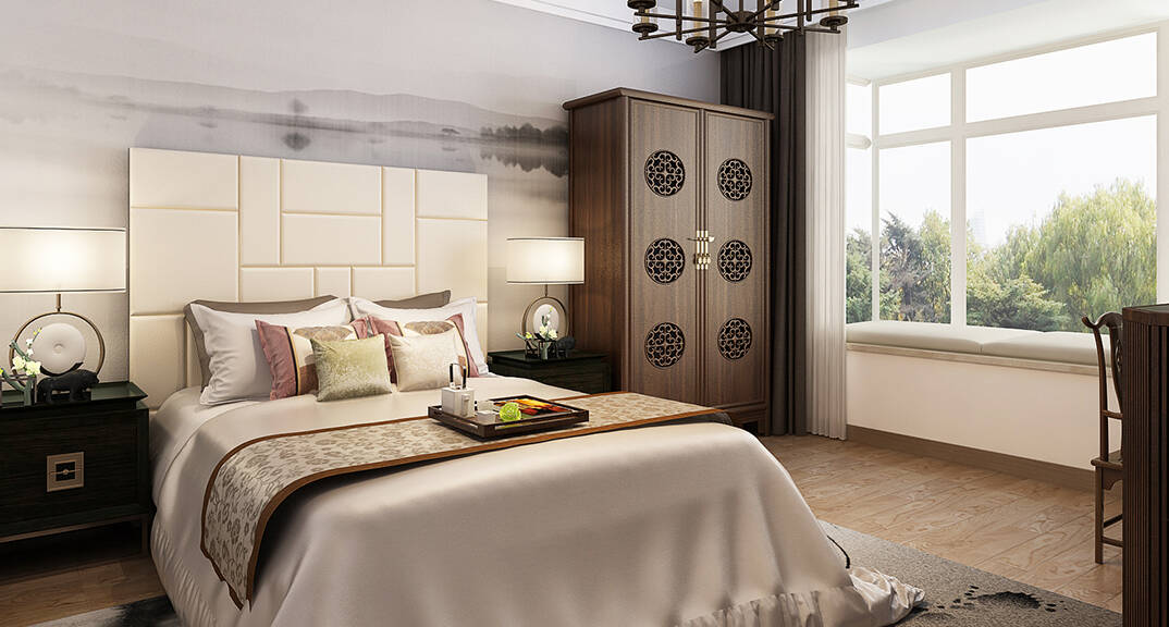 麗都國際310㎡別墅主臥現(xiàn)代中式風格裝修案例效果圖