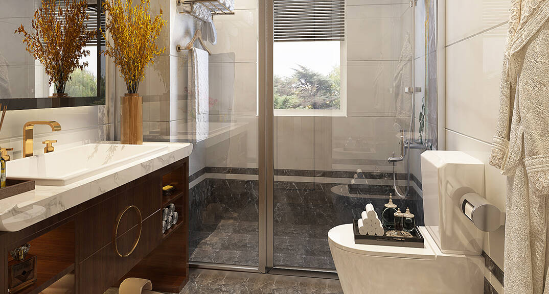 麗都國際310㎡別墅衛(wèi)生間現(xiàn)代中式風格裝修案例效果圖