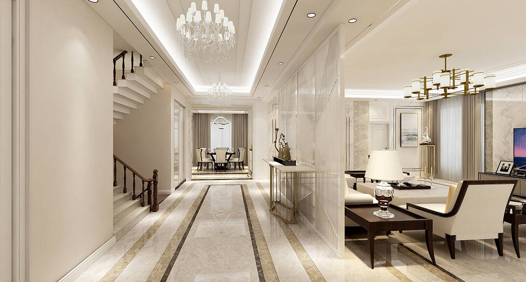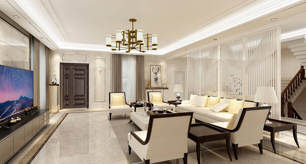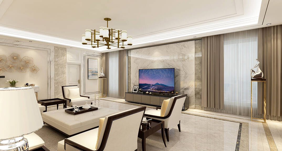 客廳明快鮮明,使用大量的石材以及部分木飾面裝潢使空間顯示出寬闊而富有歷史氣味,臥室布置較為溫馨,作為主人的私密空間,主要以功能性以及實(shí)用舒適為斟酌的重點(diǎn)