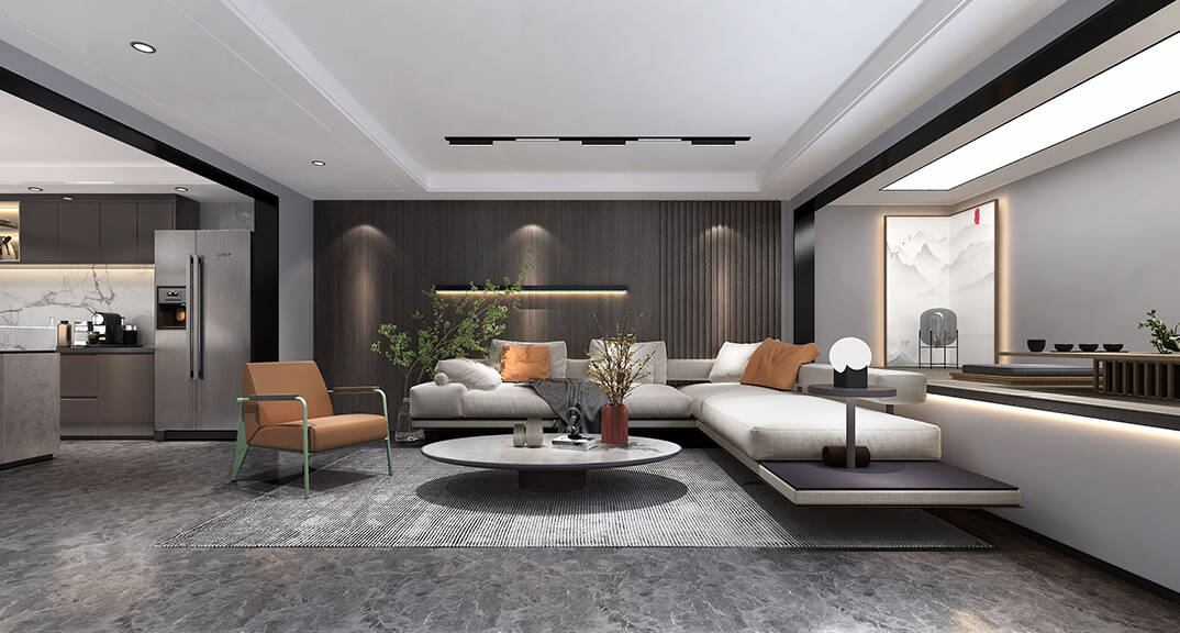 三盛國際海岸140㎡下疊客廳現(xiàn)代風格裝修案例效果圖