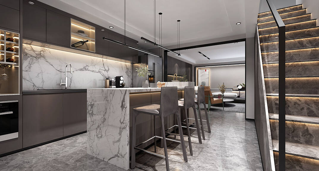 三盛國際海岸140㎡下疊餐廳現(xiàn)代風格裝修案例效果圖