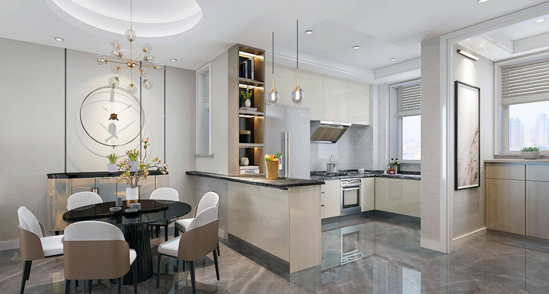 鑫江合院180㎡平層餐廳廚房輕奢風(fēng)格裝修案例效果圖