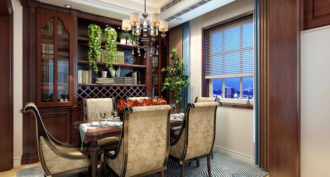 港中旅·海泉灣320㎡別墅餐廳美式風(fēng)格裝修案例效果圖