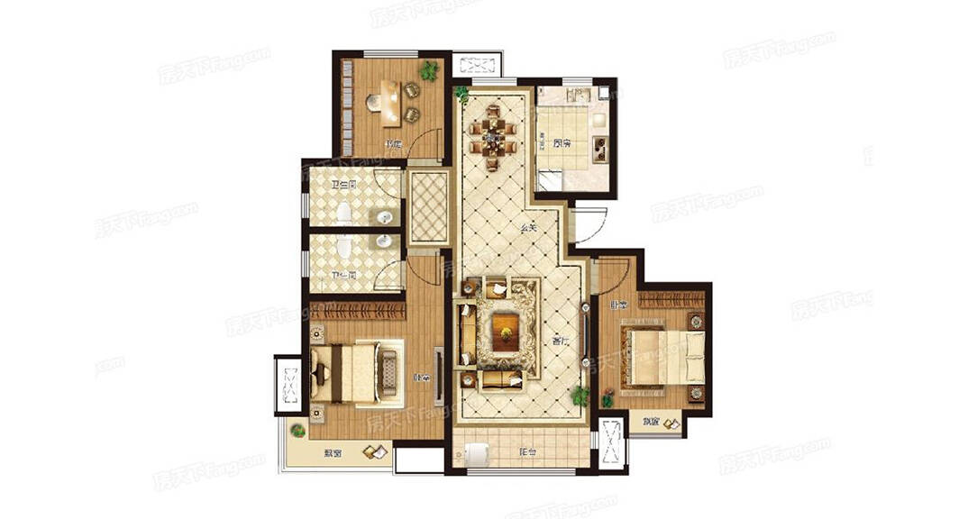 鑫江桂花園112平3室現(xiàn)代風(fēng)格裝修戶型圖
