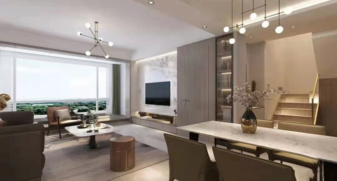天一仁和瓏樾海115㎡別墅上疊客廳現(xiàn)代風(fēng)格裝修案例效果圖