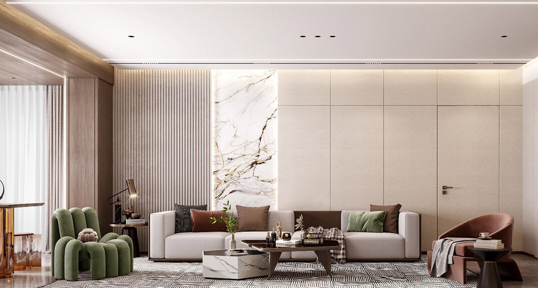 天一仁和瓏樾海115㎡三室兩廳兩衛(wèi)客廳沙發(fā)現(xiàn)代簡約風(fēng)格裝修研發(fā)效果圖