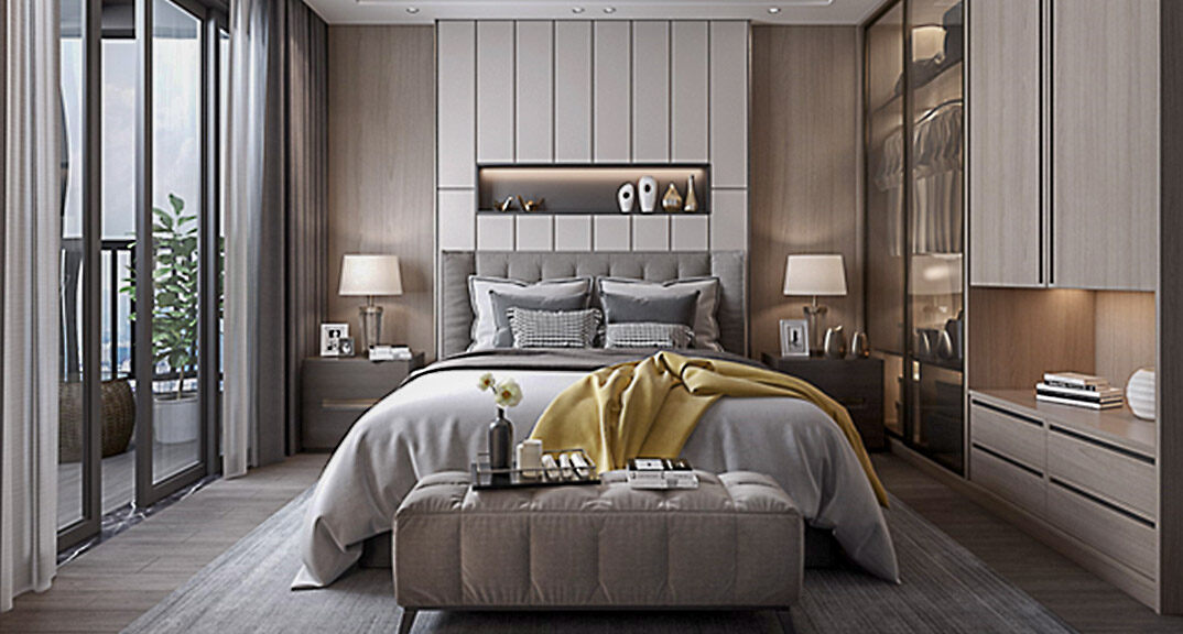 天一仁和瓏樾海115㎡三室兩廳兩衛(wèi)主臥現(xiàn)代簡約風(fēng)格裝修研發(fā)效果圖