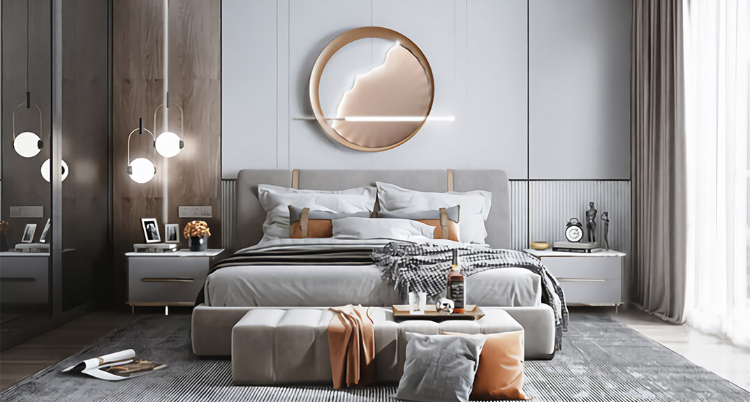 天一仁和瓏樾海125㎡別墅上疊主臥現(xiàn)代輕奢風(fēng)格裝修研發(fā)效果圖