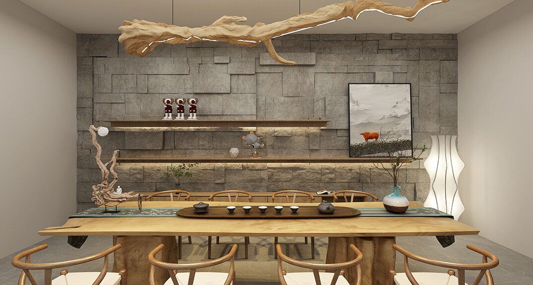 融創(chuàng)紅島壹號(hào)院207㎡別墅茶室侘寂風(fēng)格裝修案例效果圖