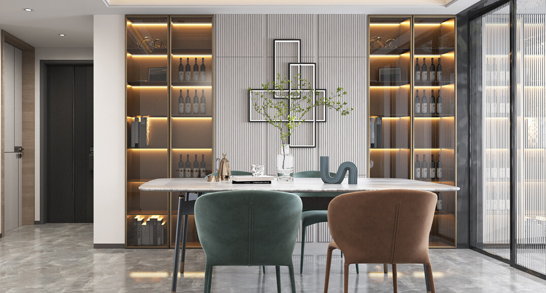 青鐵海譽府143㎡三室二廳餐廳輕奢風格裝修案例效果圖