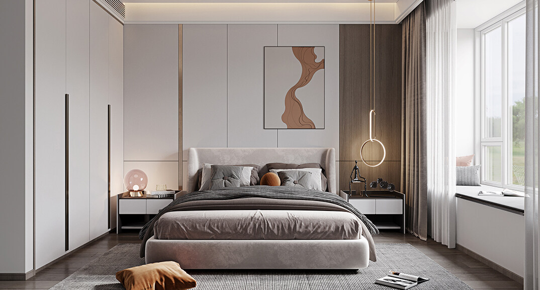 青鐵海譽府143㎡三室二廳臥室輕奢風格裝修案例效果圖