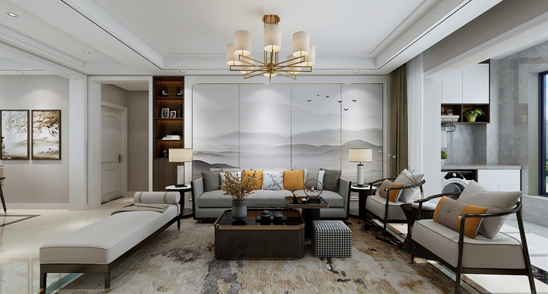 海信·紹興路66號(hào)130㎡三室二廳客廳沙發(fā)新中式風(fēng)格裝修案例效果圖