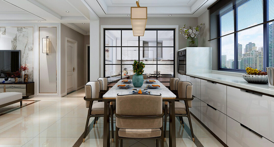 海信·紹興路66號(hào)130㎡三室二廳餐廳新中式風(fēng)格裝修案例效果圖