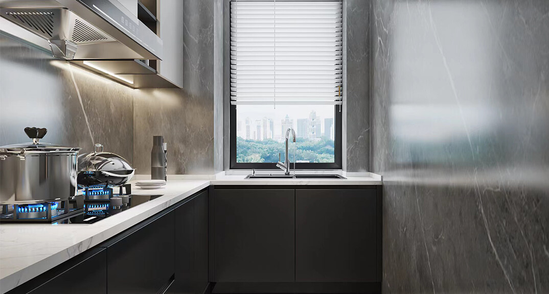 魯商藍岸公館124㎡三室二廳廚房現(xiàn)代中式風(fēng)格戶型研發(fā)案例效果圖
