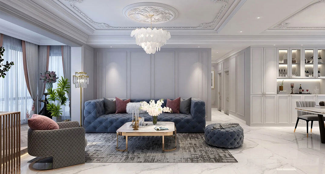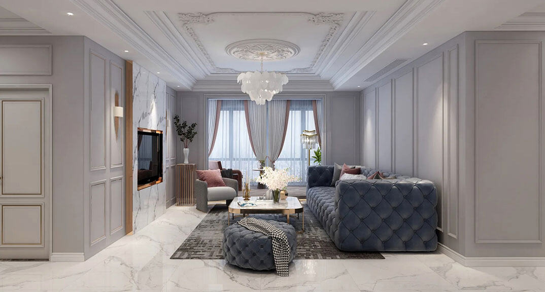 御苑小區(qū)137㎡三室二廳客廳沙發(fā)法式輕奢風(fēng)格裝修案例效果圖