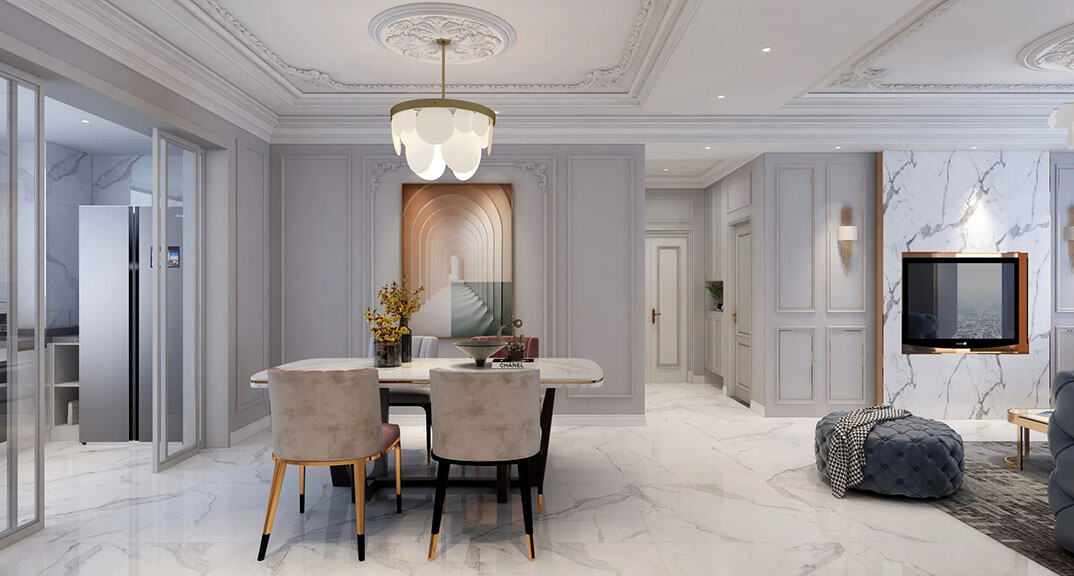 御苑小區(qū)137㎡三室二廳餐廳法式輕奢風(fēng)格裝修案例效果圖