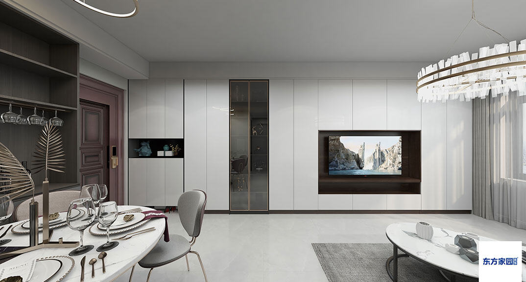 悅海地120㎡三室兩廳客餐廳現(xiàn)代簡約風(fēng)格裝修案例效果圖