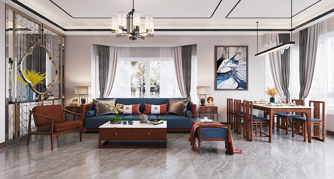 紫荊閣150㎡別墅下疊客餐廳新中式風(fēng)格裝修案例效果圖