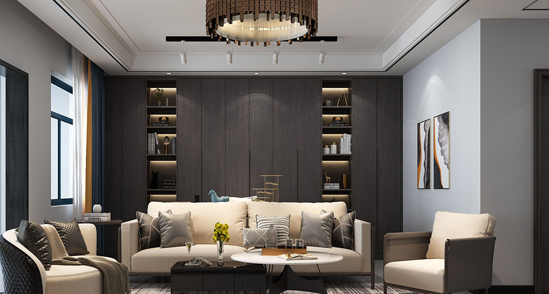 桂花園210㎡別墅復(fù)式客廳現(xiàn)代輕奢風(fēng)格裝修案例效果圖