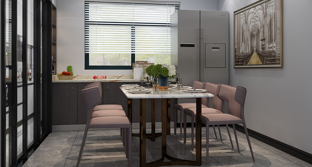 桂花園210㎡別墅復(fù)式餐廳現(xiàn)代輕奢風(fēng)格裝修案例效果圖