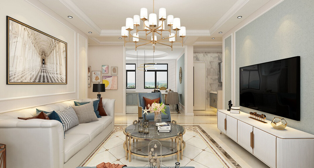 青鋼小鎮(zhèn)105㎡三室兩廳客廳電視簡(jiǎn)歐現(xiàn)代風(fēng)格裝修案例效果圖