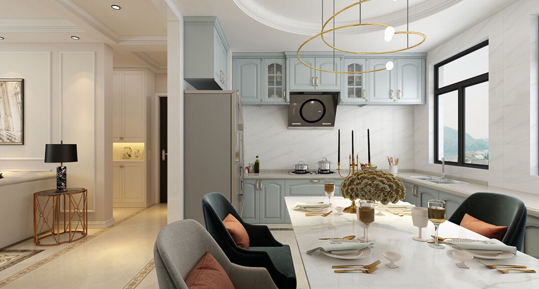 青鋼小鎮(zhèn)105㎡三室兩廳餐廳簡(jiǎn)歐現(xiàn)代風(fēng)格裝修案例效果圖