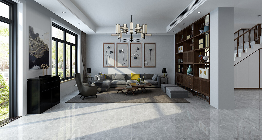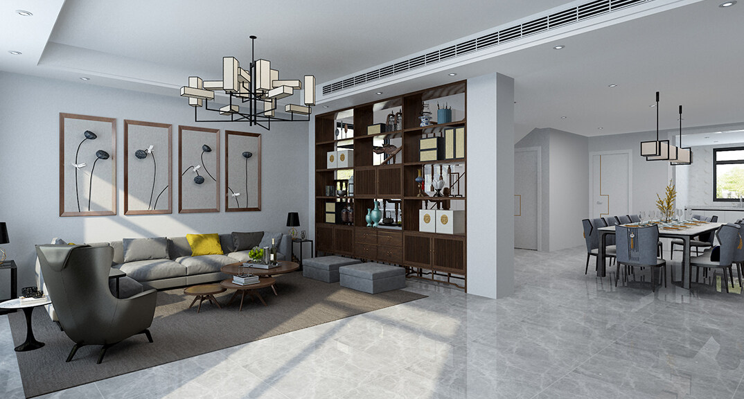 白鷺灣230㎡H戶型客餐廳新中式風格裝修案例效果圖