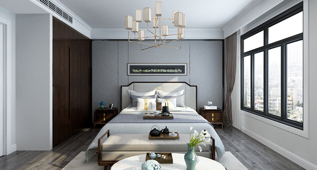 白鷺灣230㎡H戶型臥室新中式風格裝修案例效果圖