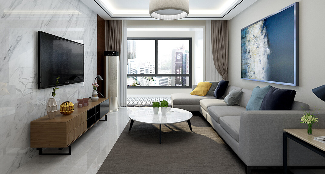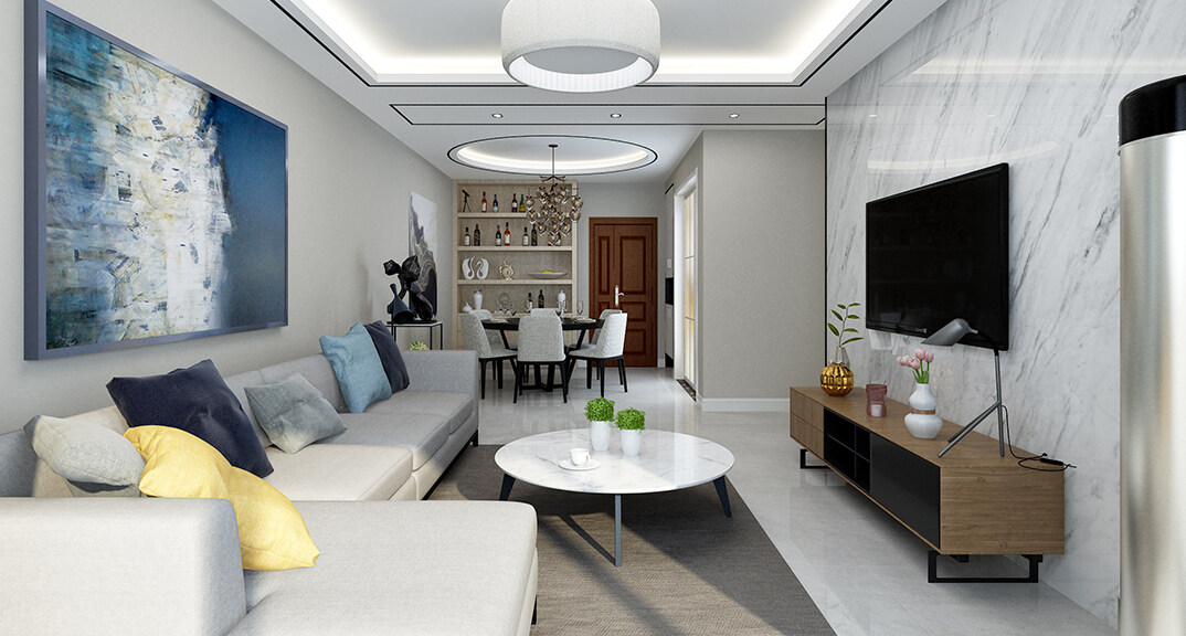 安泰德園128㎡三室兩廳客廳現(xiàn)代簡約風格裝修案例效果圖