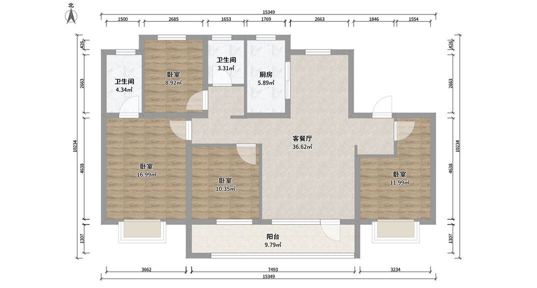 依云四季118㎡三室兩廳戶型平面布局圖