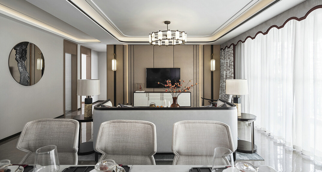 青特星城142㎡三室兩廳客餐廳新中式風格裝修案例效果圖