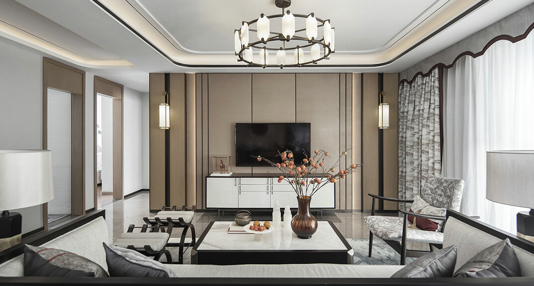 青特星城142㎡三室兩廳客廳新中式風格裝修案例效果圖