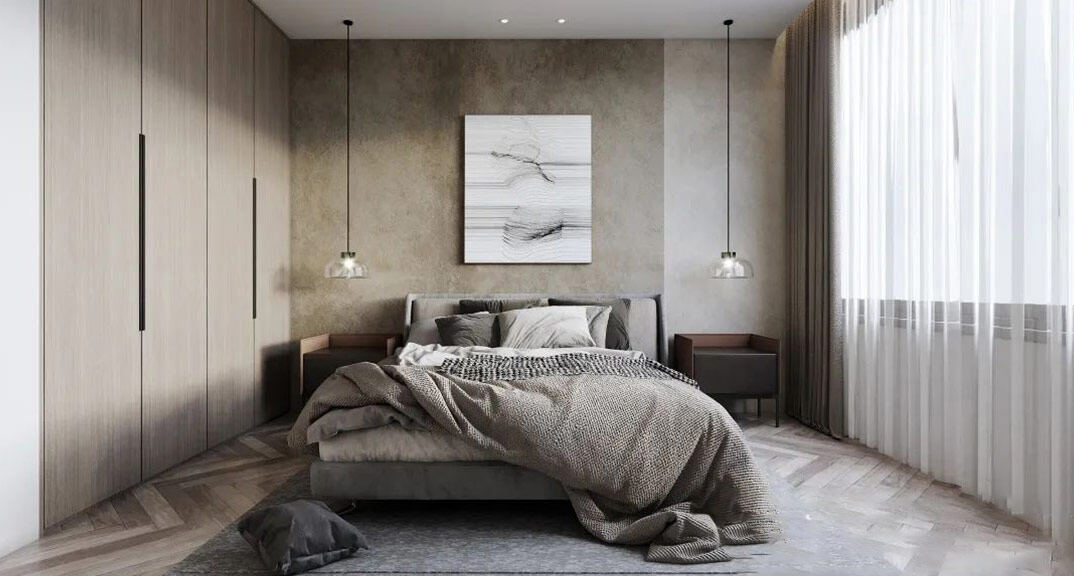 日鋼綠城300㎡別墅主臥現(xiàn)代輕奢風(fēng)格裝修案例效果圖