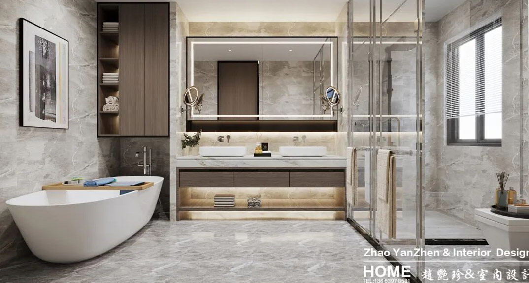 日鋼綠城300㎡別墅衛(wèi)生間現(xiàn)代輕奢風(fēng)格裝修案例效果圖