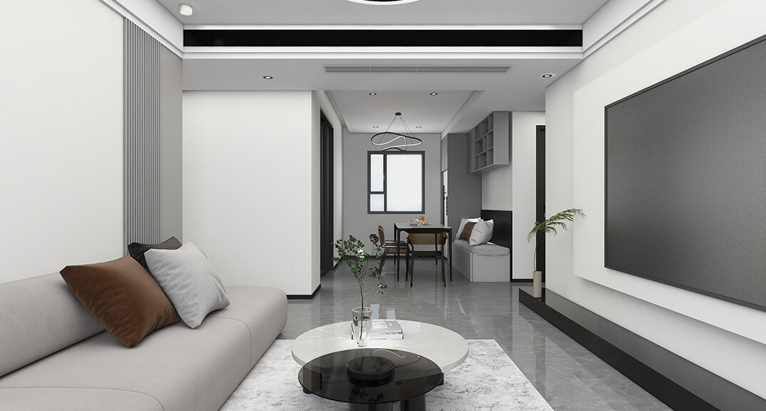 下崖社區(qū)112㎡三室兩廳客廳極簡風格裝修案例效果圖
