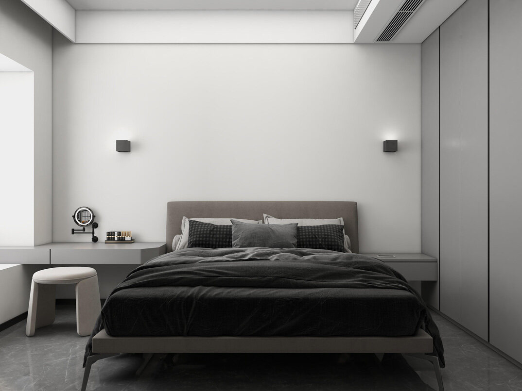 下崖社區(qū)112㎡三室兩廳主臥極簡風格裝修案例效果圖