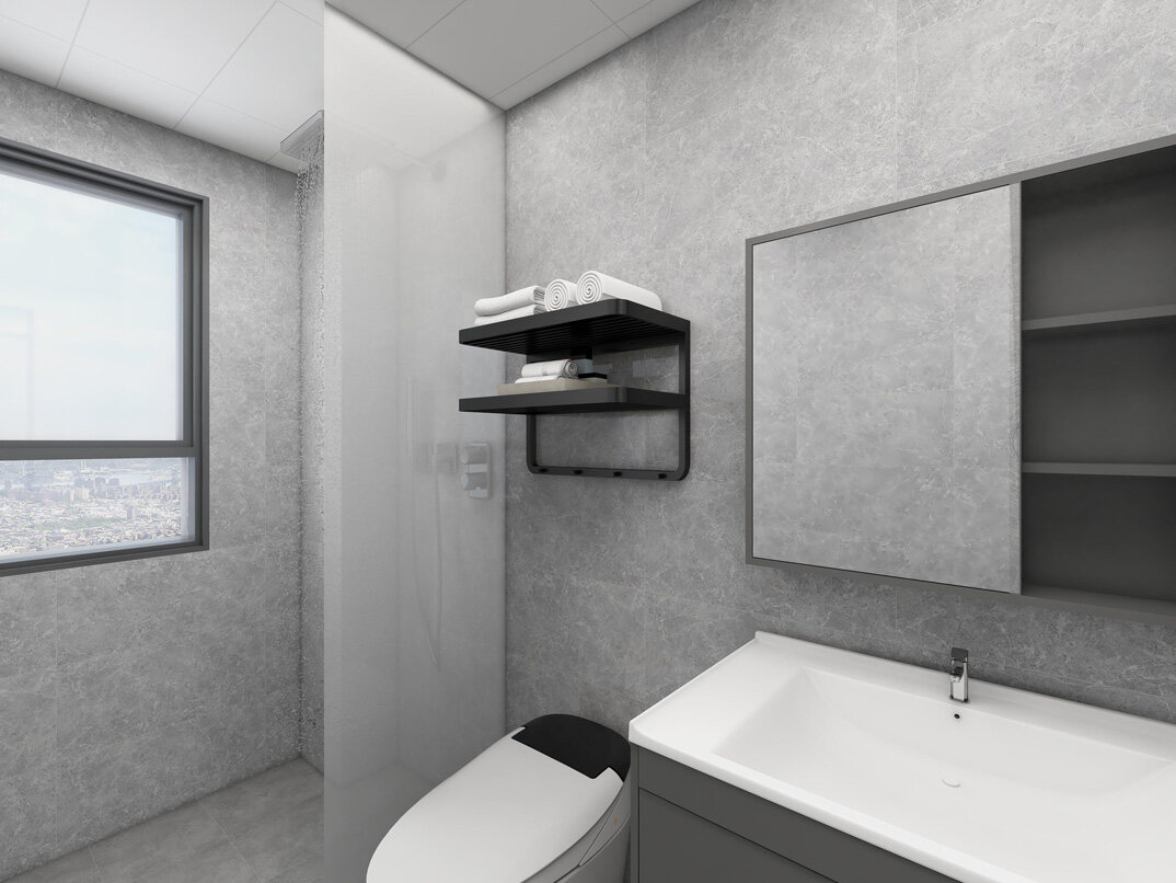 下崖社區(qū)112㎡三室兩廳衛(wèi)生間極簡風格裝修案例效果圖
