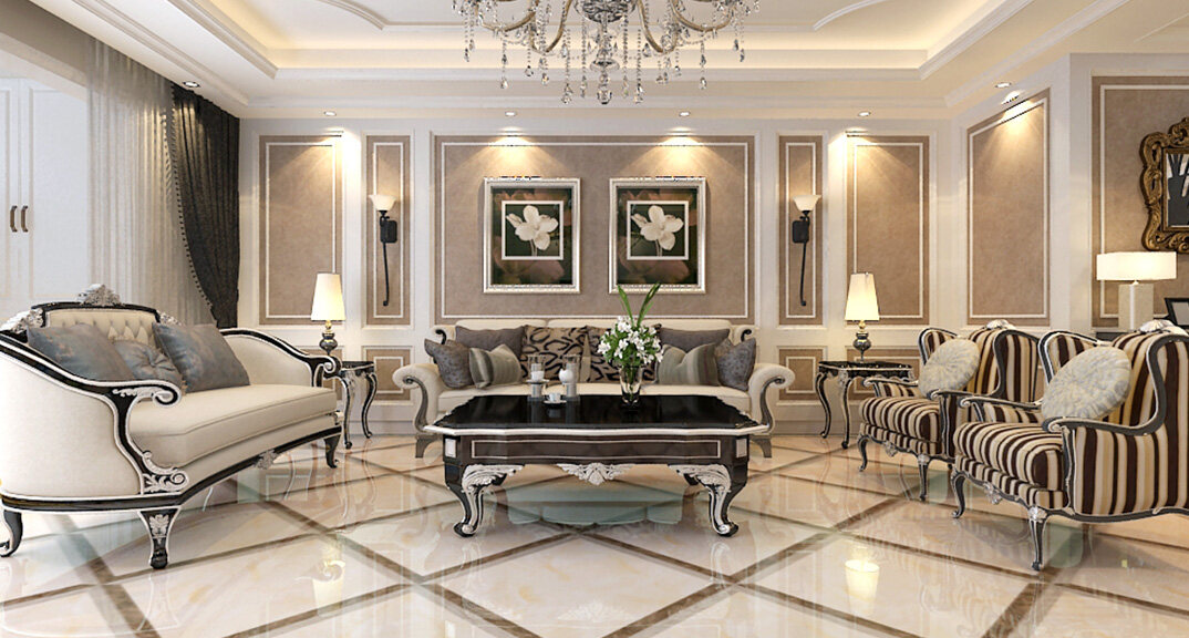 魯潤靜園234㎡四室兩廳客廳沙發(fā)簡歐風格裝修案例效果圖