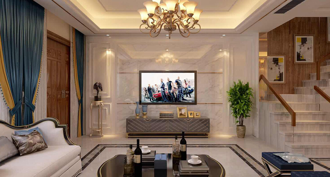 金秋泰和郡186㎡別墅客廳電視現(xiàn)代歐式風(fēng)格裝修案例效果圖