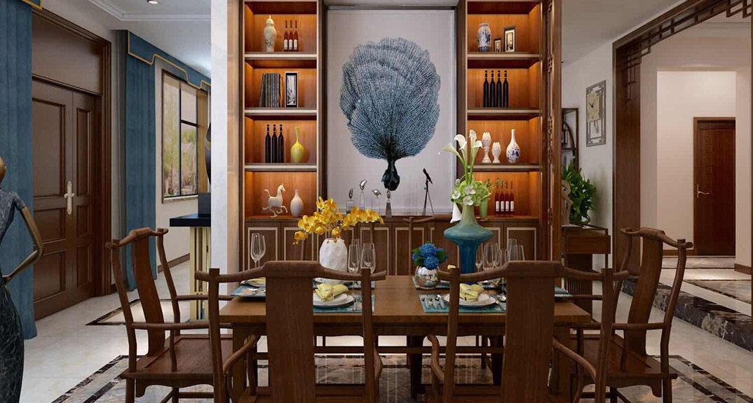 自建別墅360㎡別墅餐廳中式風(fēng)格裝修案例效果圖