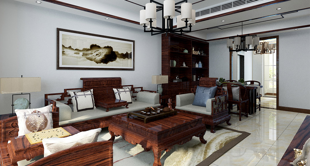 安泰德園142㎡三室兩廳客廳新中式風(fēng)格裝修案例效果圖