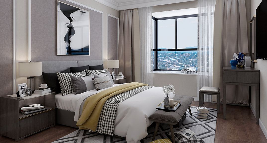 桂花園122㎡三室兩廳主臥美式風(fēng)格裝修案例效果圖