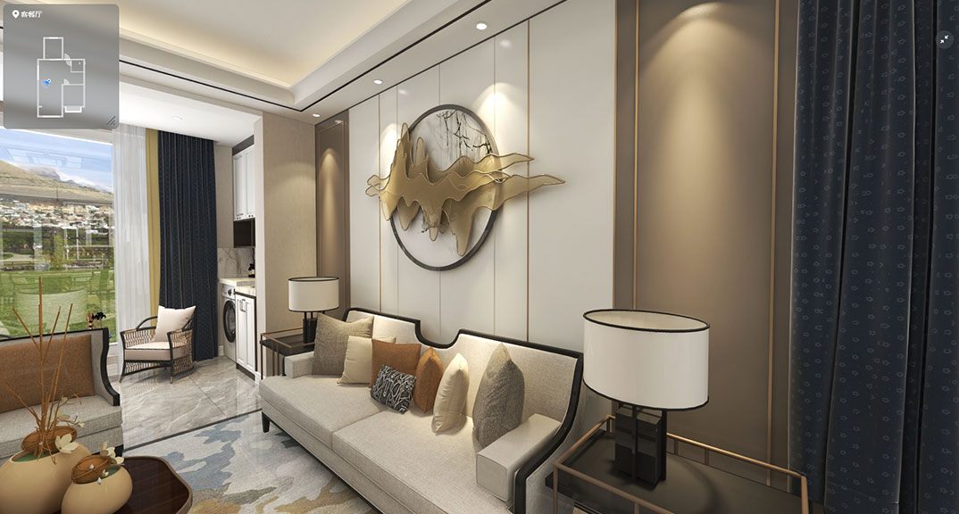 雍錦半島180㎡別墅上疊客廳輕奢風(fēng)格裝修案例效果圖