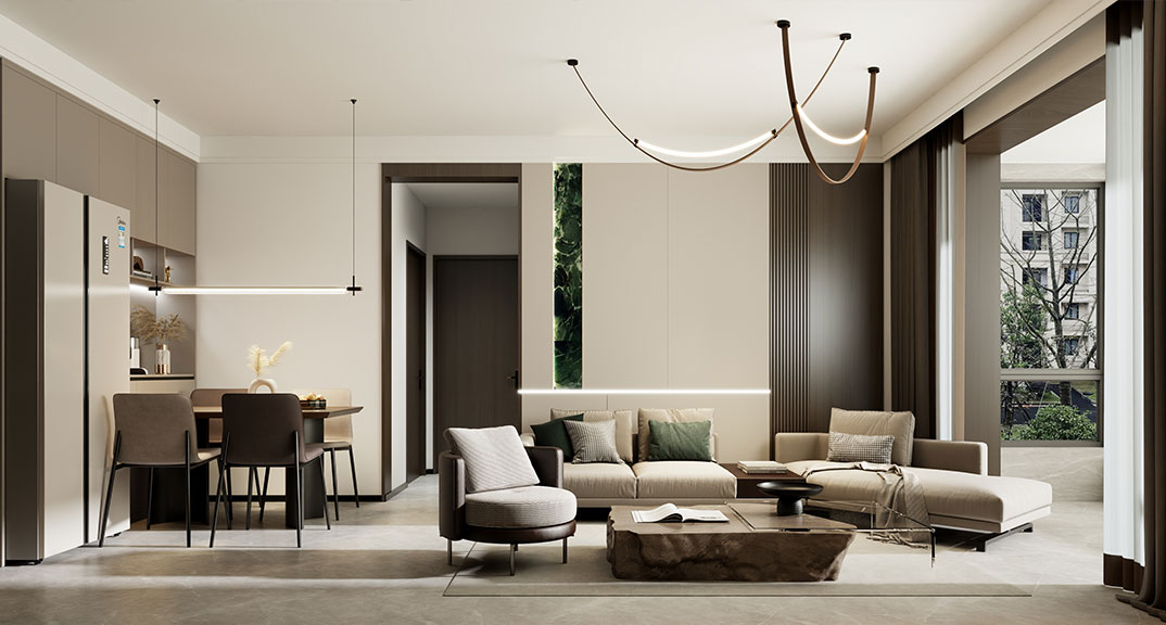 悅動(dòng)灣109㎡三室兩廳客餐廳現(xiàn)代簡約風(fēng)格裝修案例效果圖