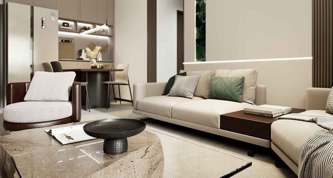 悅動(dòng)灣109㎡三室兩廳客廳沙發(fā)現(xiàn)代簡約風(fēng)格裝修案例效果圖